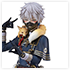 His slender yet gallant appearance has been carefully sculpted together with all the finer parts of his outfit included in intricate detail - the mask that covers his face, the single shoulder cape and even the leg cape gently wavering in the wind. His fox companion curled around his neck has also been included, allowing Nakigitsune fans to enjoy all of his charms right by their side!